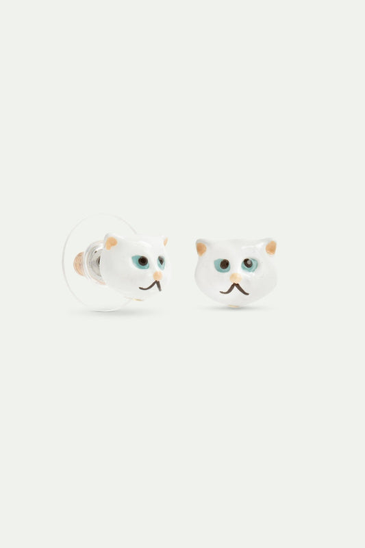 White Cat Head Post Earrings | AVLA1041 (stud)
