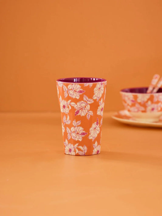 Orange Faded Hibiscus Print - Tall Melamine Cup