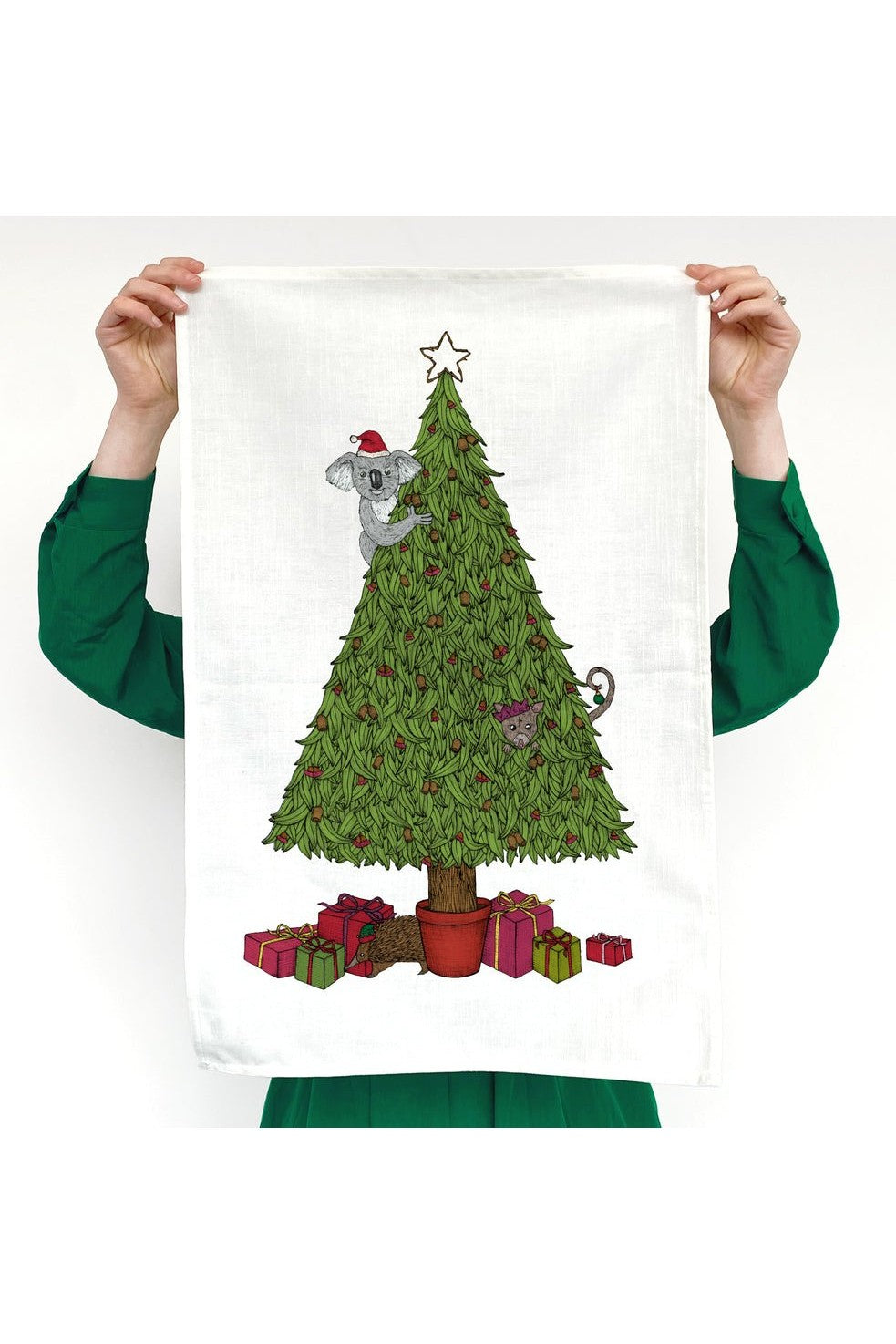 Hand illustrated Australian Christmas tea towels. Melbourne designed, printed, and sewn.