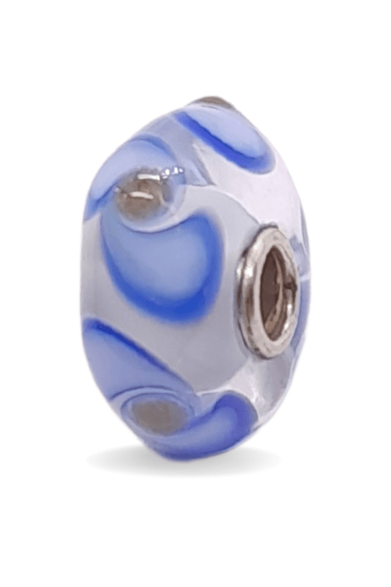 This is a unique bead by Trollbeads. There are droplet patterns around the glass bead. The photo is the actual bead that you will be buying.