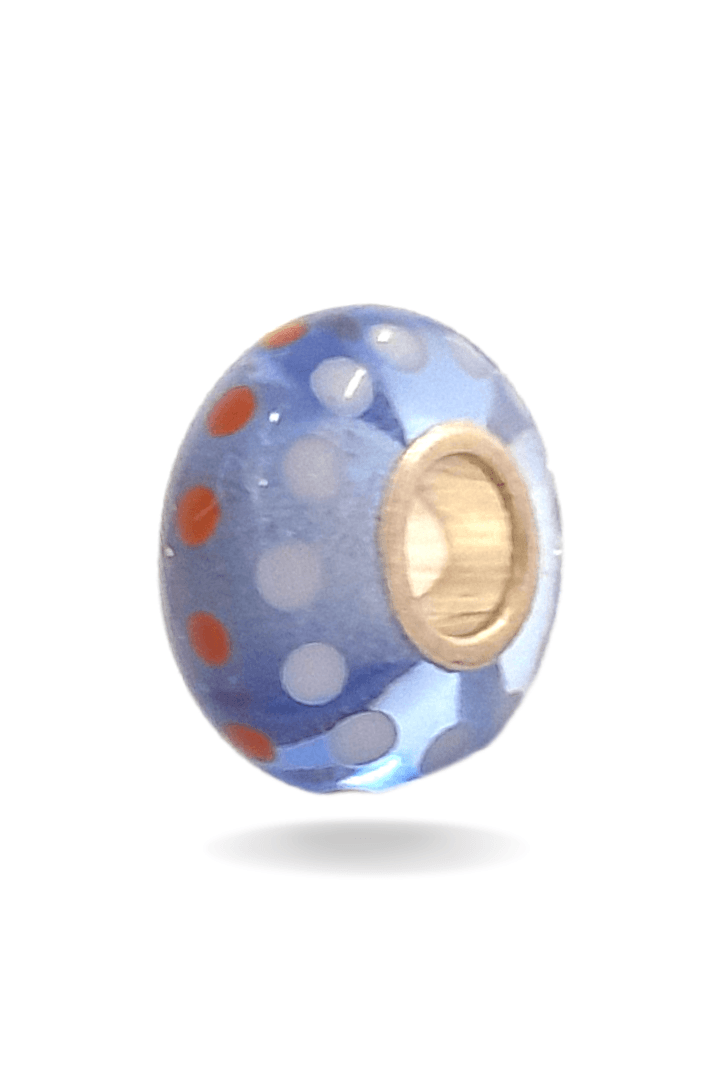 Blue Glass Bead with White and Orange Dots Universal Unique Bead #1498