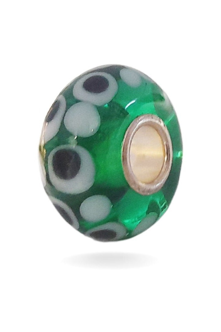 Green Transparent Bead with Blue Dots Universal Unique Bead #1419