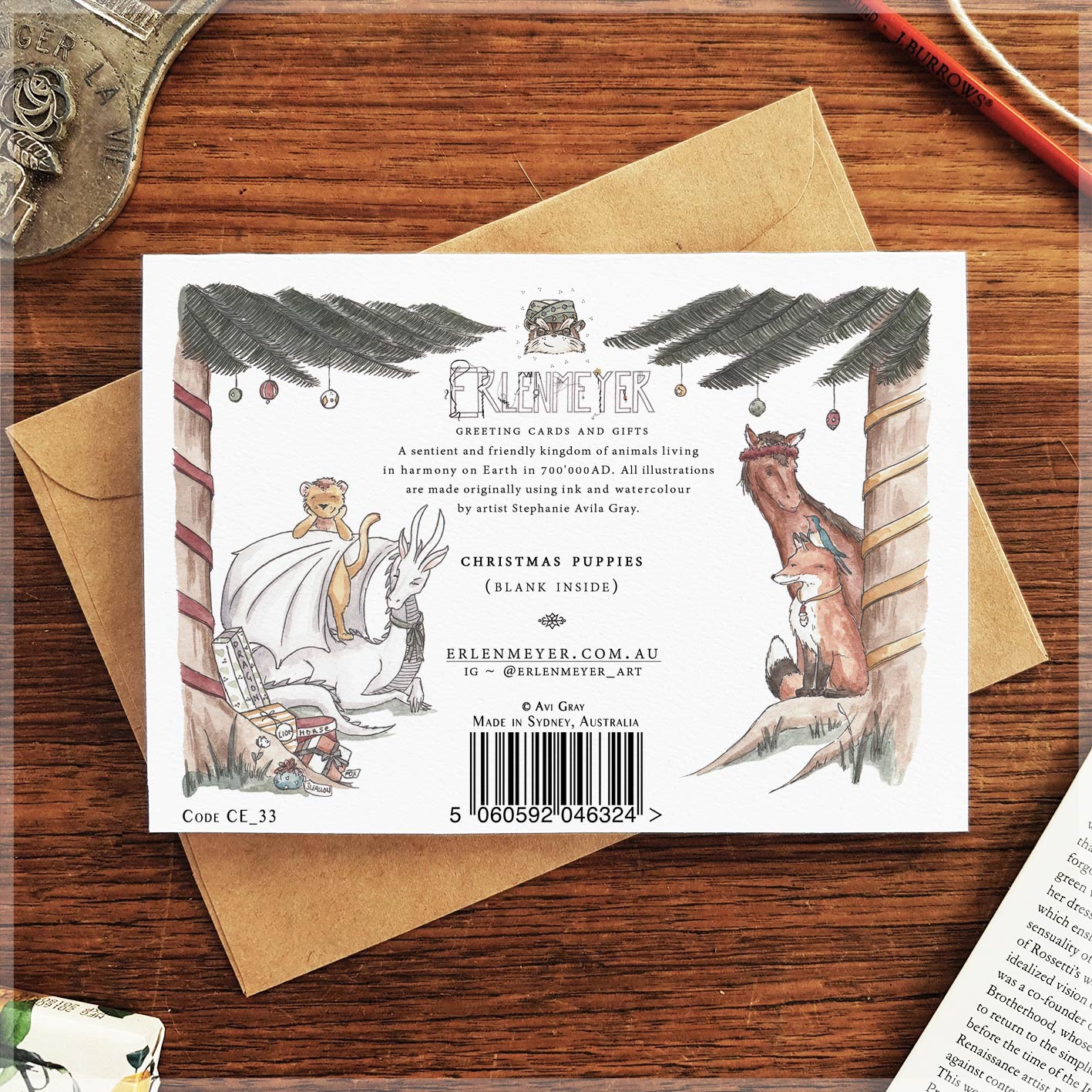 - Includes a brown paper envelope; designed and made in Australia.