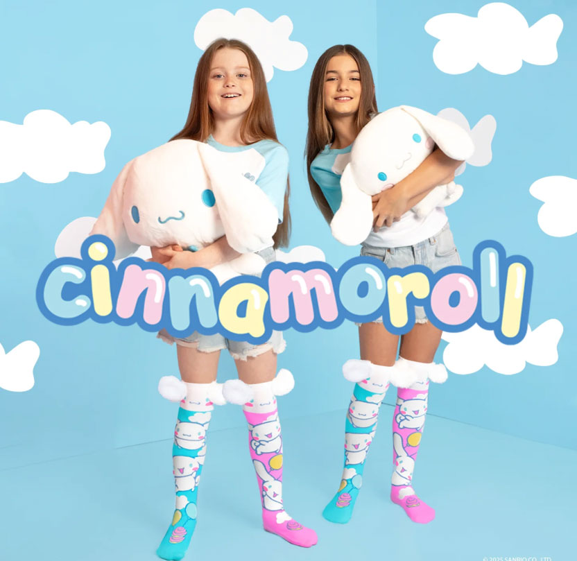 Cinnamoroll has landed—and he’s floating in on a cloud of pastel cuteness. These playful socks feature mismatched designs: one with Cinnamoroll drifting through a blue sky, the other set against a pink sky filled with balloons. Finished with fluffy 3D plush ears, they’re made for fans who love soft colours, dreamy details, and standout novelty socks.