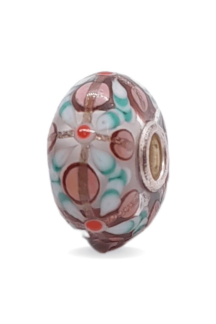 This is a unique bead by Trollbeads. There are patterns around the glass bead. The photo is the actual bead that you will be buying.