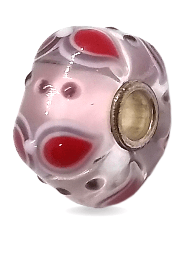 This is a unique bead by Trollbeads. There are complex patterns around the glass bead. The photo is the actual bead that you will be buying.