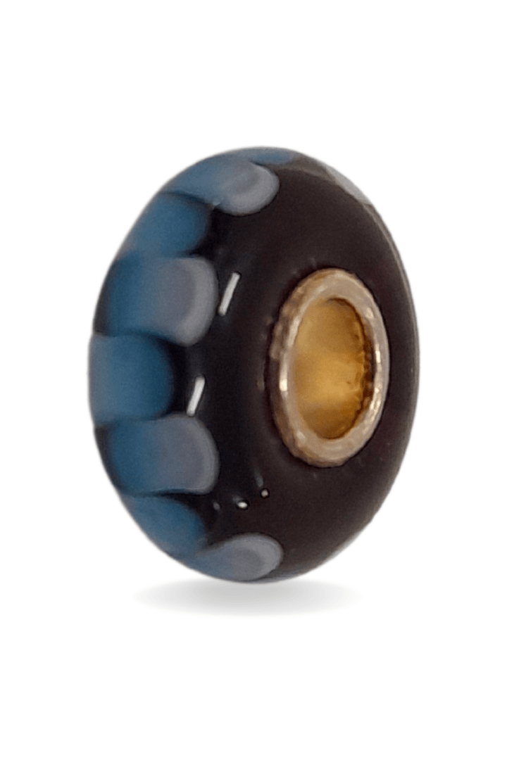 This is a unique bead by Trollbeads. There are complex patterns around the glass bead. The photo is the actual bead that you will be buying.