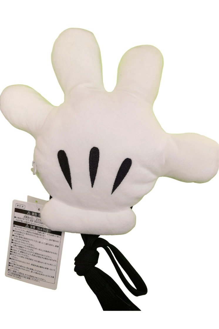 The Mickey hand plush shoulder bag is a unique accessory featuring the iconic white-gloved hand of Mickey Mouse. This playful accessory allows fans to showcase their love for Disney in a fun and stylish way.