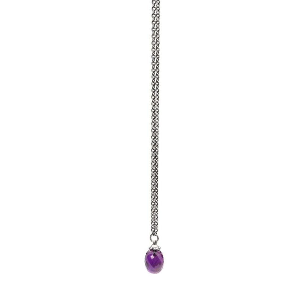 This lockless chain is fitted with an Amethyst gemstone. Trollbeads may be mounted above the gemstone without the use of tools.