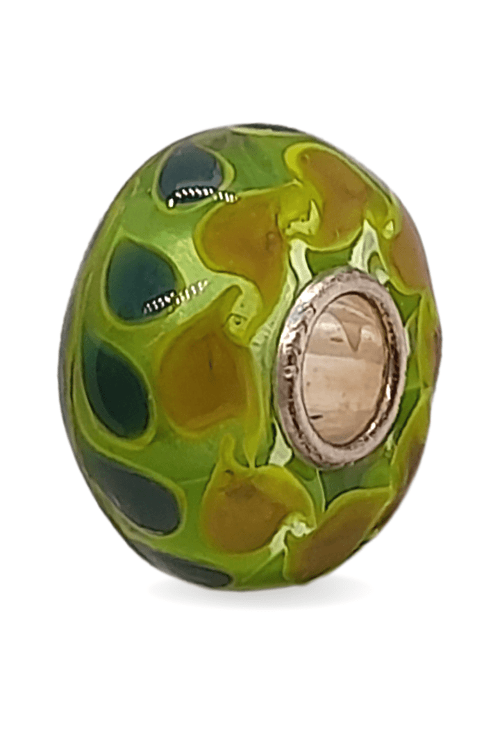 Green Glass Bead with Green and Yellow Latte Pattern Universal Unique Bead #1509