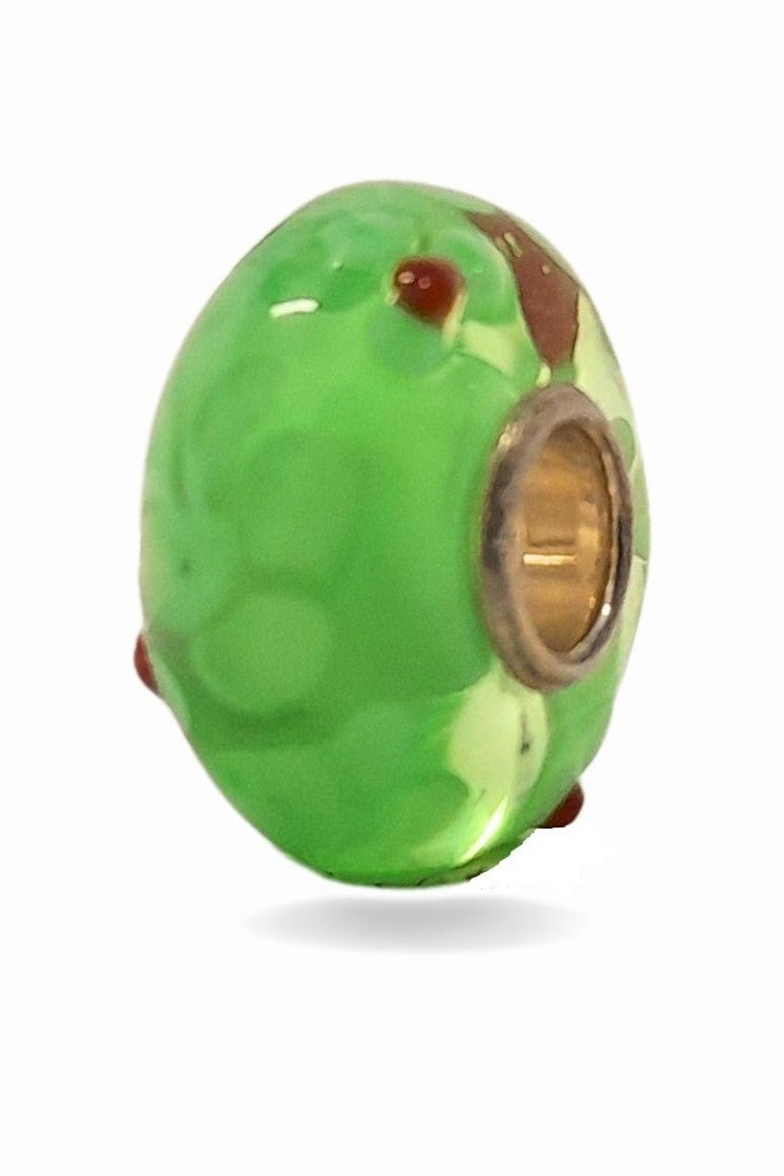 Green Glass Bead with Leaves Universal Unique Bead #1557