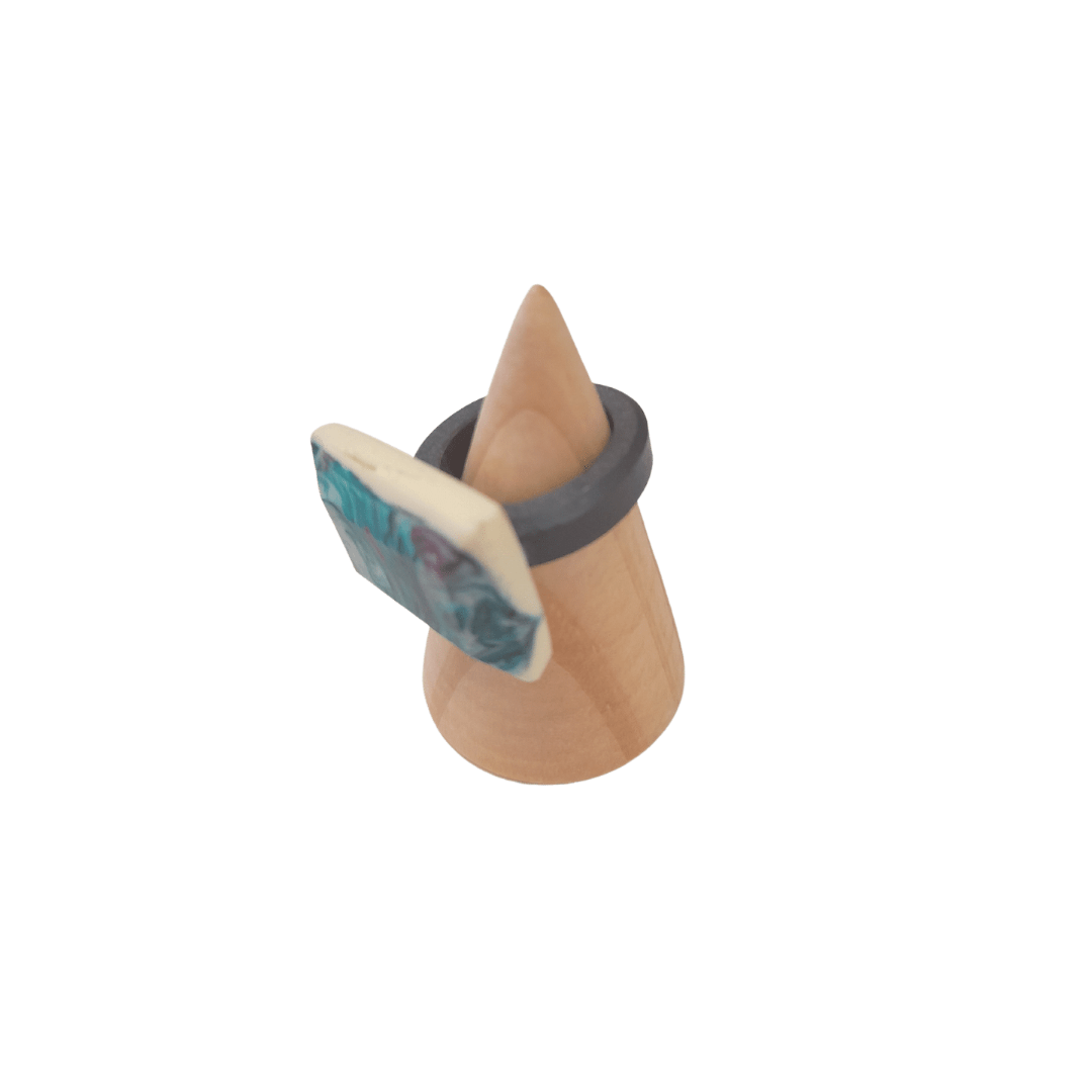 Green Rectangle Marble Resin Ring