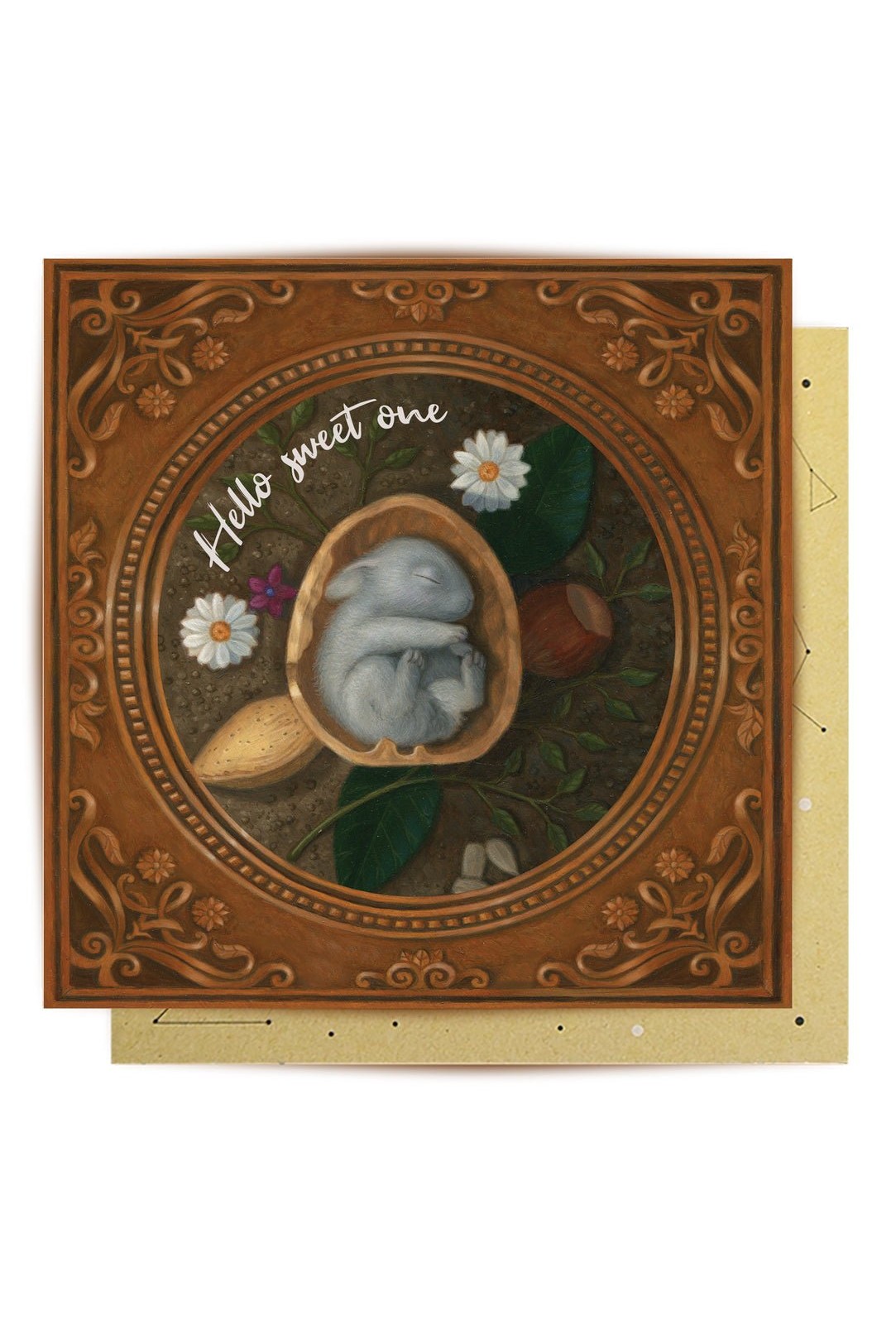 14 x 14 cm greeting card with illustrations inside and out. Includes a kraft envelope.