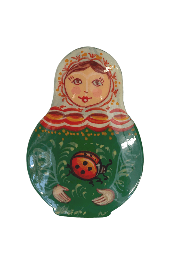 Hand-painted wooden Russian Matryoshka Doll Pin.
