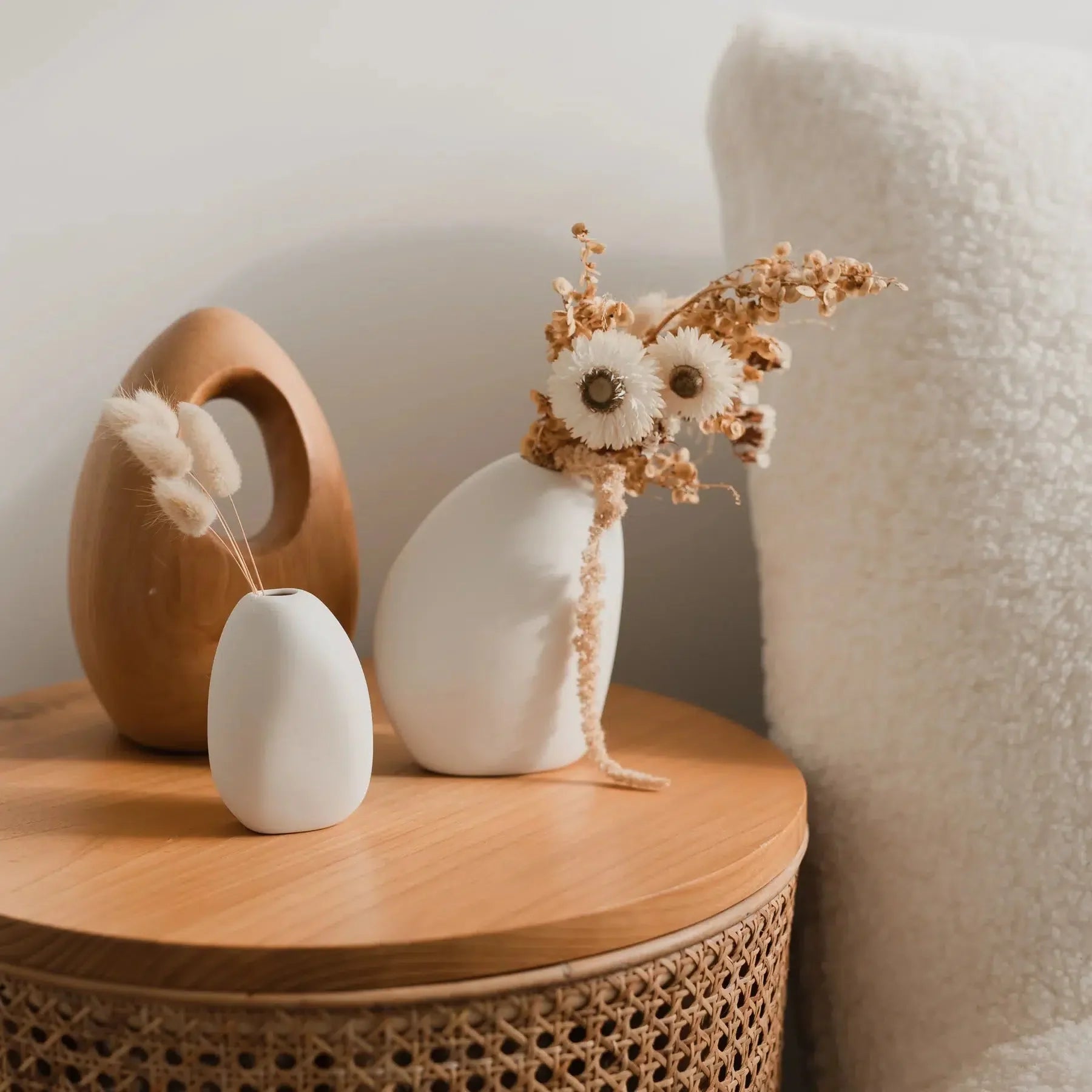 Inspired by Vietnamese Artisans, The Harmie Vase, gives that hand-crafted feel, moulded into organic seed-like shapes, in a modern colour palette.