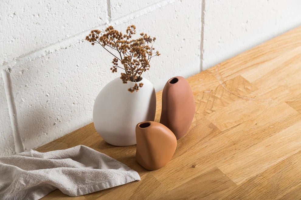 Inspired by Vietnamese Artisans, The Harmie Vase, gives that hand-crafted feel, moulded into organic seed-like shapes, in a modern colour palette.