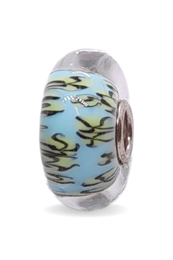 This is a unique bead by Trollbeads. There are patterns around the glass bead. The photo is the actual bead that you will be buying.