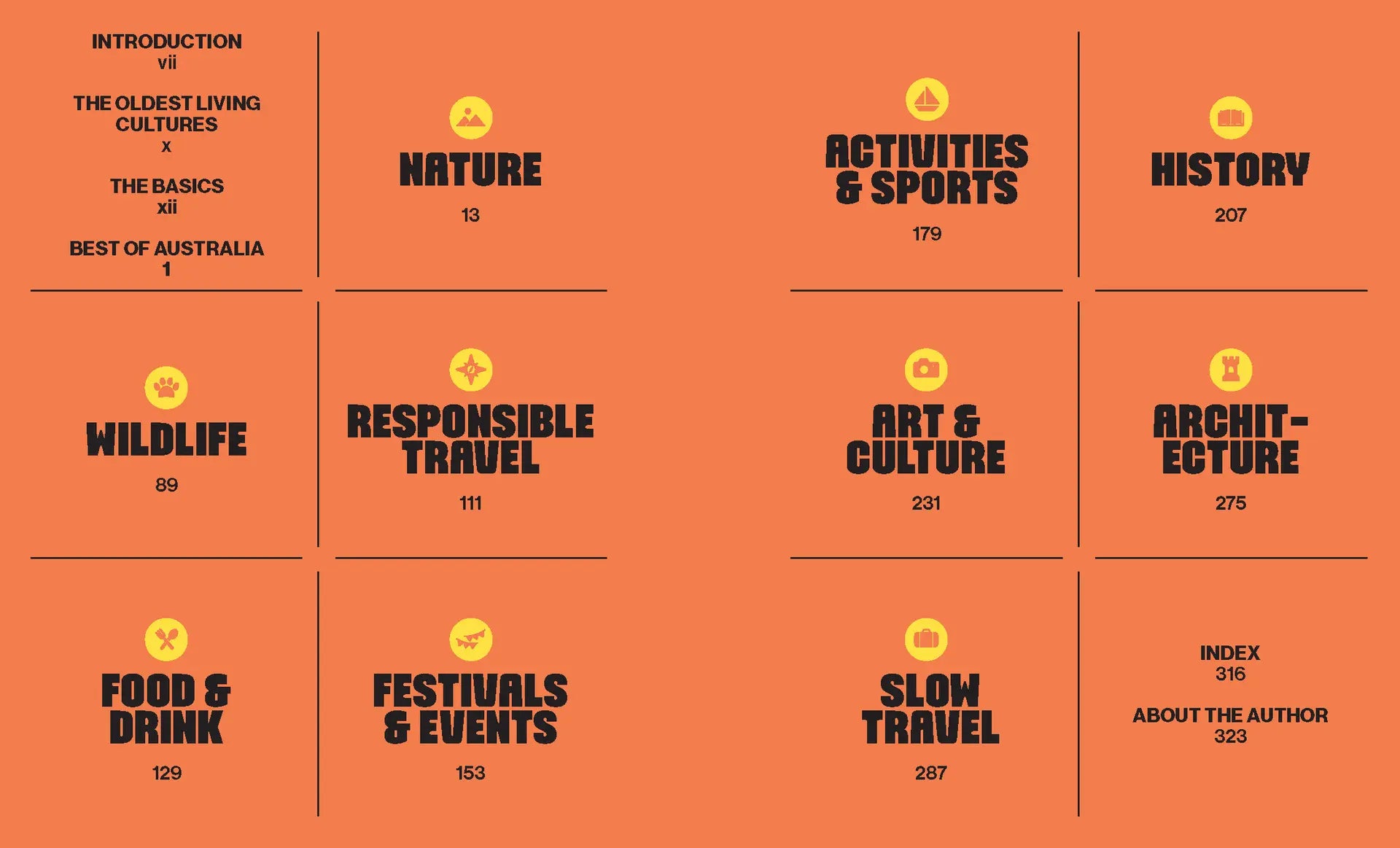 Rather than simply listing places to visit, this guide dives into the stories, people, and environments that shape Australia. It encourages travellers to experience the country in deeper ways: following the seasonal fagus pilgrimage at Cradle Mountain, attending the Garma Festival in Arnhem Land, exploring the gorges of the Kimberley, or seeking out meaningful wildlife and community-led experiences. With a strong focus on sustainability and ethical travel, the book promotes choices that support local communities while protecting Australia’s unique environments.