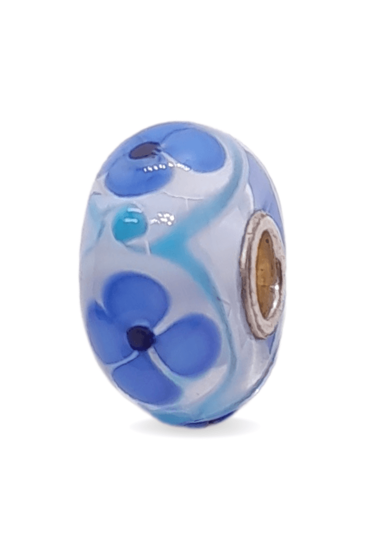 This is a unique bead by Trollbeads. There are flower patterns around the glass bead. The photo is the actual bead that you will be buying.