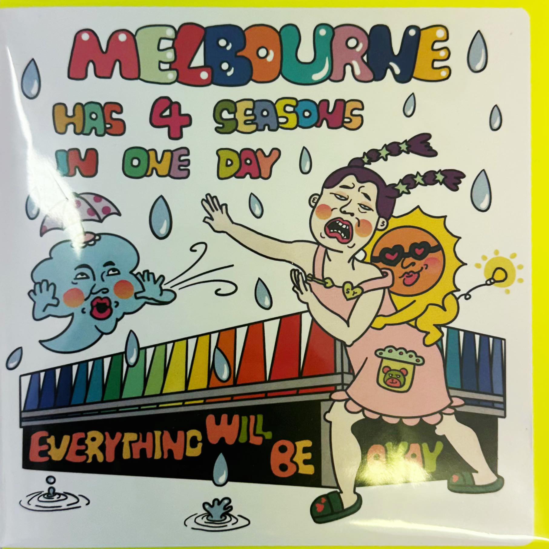Hey Hey, It’s Okay to Be Not Okay. We’ve all experienced the storm of life at some point, but like Melbourne’s weather, sunshine always follows the rain. Known as a liveable city with four seasons in one day, Melbourne reminds us that everything will be okay once we’re okay with everything. Good things are coming down the road — just keep breathing, smiling, and walking!