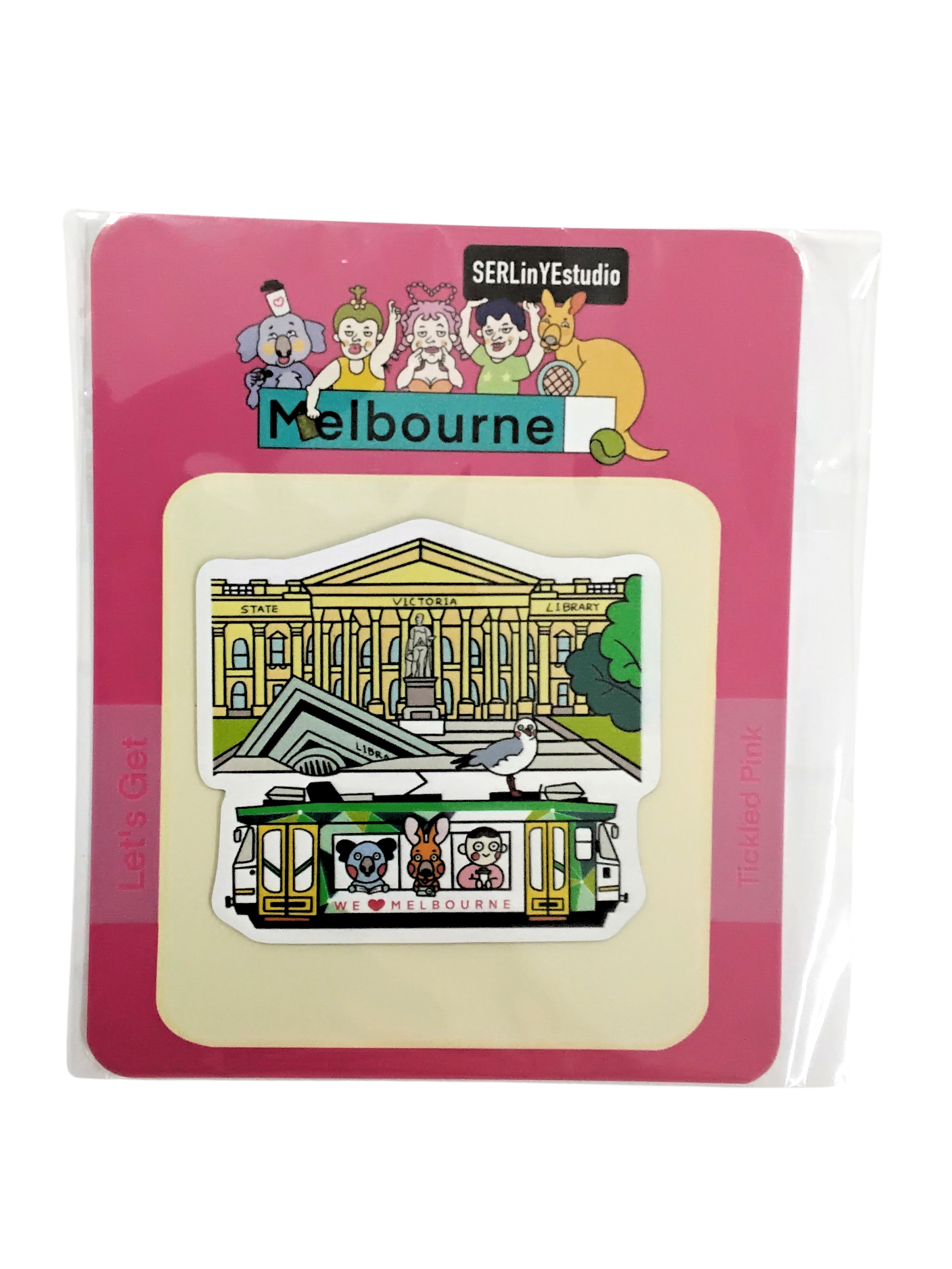 Celebrate the charm of Melbourne with this delightful magnet by Serlin Ye Studio, featuring the State Library Victoria and a classic Melbourne tram. The scene captures the city’s creative buzz — from the historic architecture and colourful trams to the quirky local characters that make Melbourne so unique.