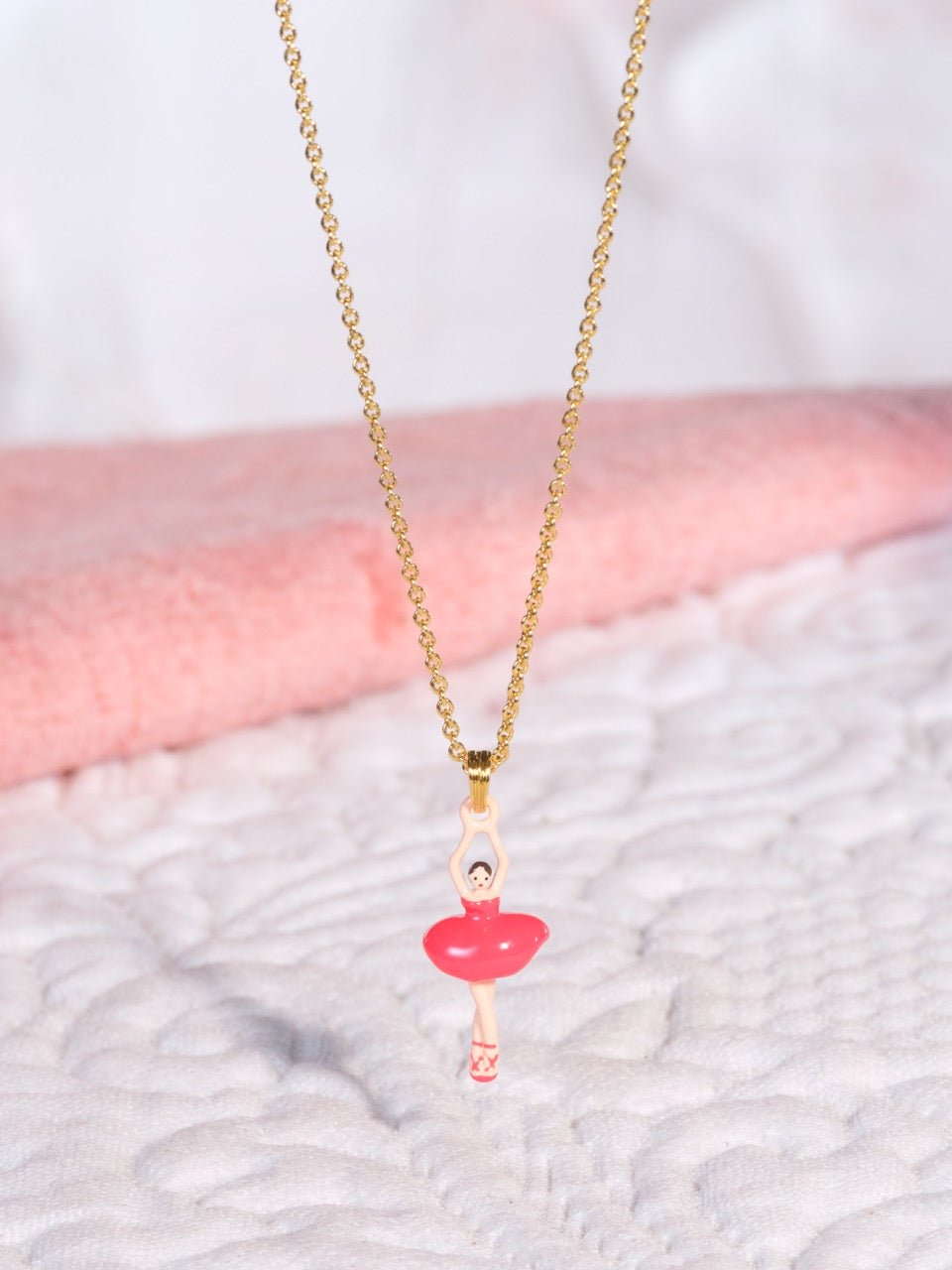 Ballerina pendant with a coral pink tutu from the Mini Pas de Deux collection