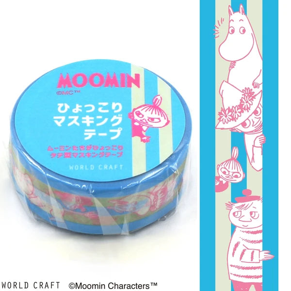 Vertical-style washi masking tape with Moomin characters peeking from the border