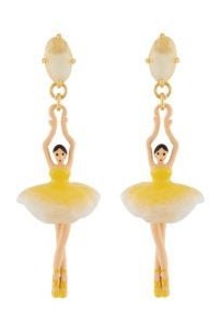 Channel the elegance of the ballet with the Pas de Deux Faceted Crystal Gradient Grenadine Earrings by Les Néréides. Inspired by the fluid motion and beauty of classical dance, these statement earrings feature graceful ballerinas in a deep grenadine gradient dress, delicately accented with hand-faceted crystals. A stunning composition of art and craftsmanship, they add theatrical charm to any ensemble.