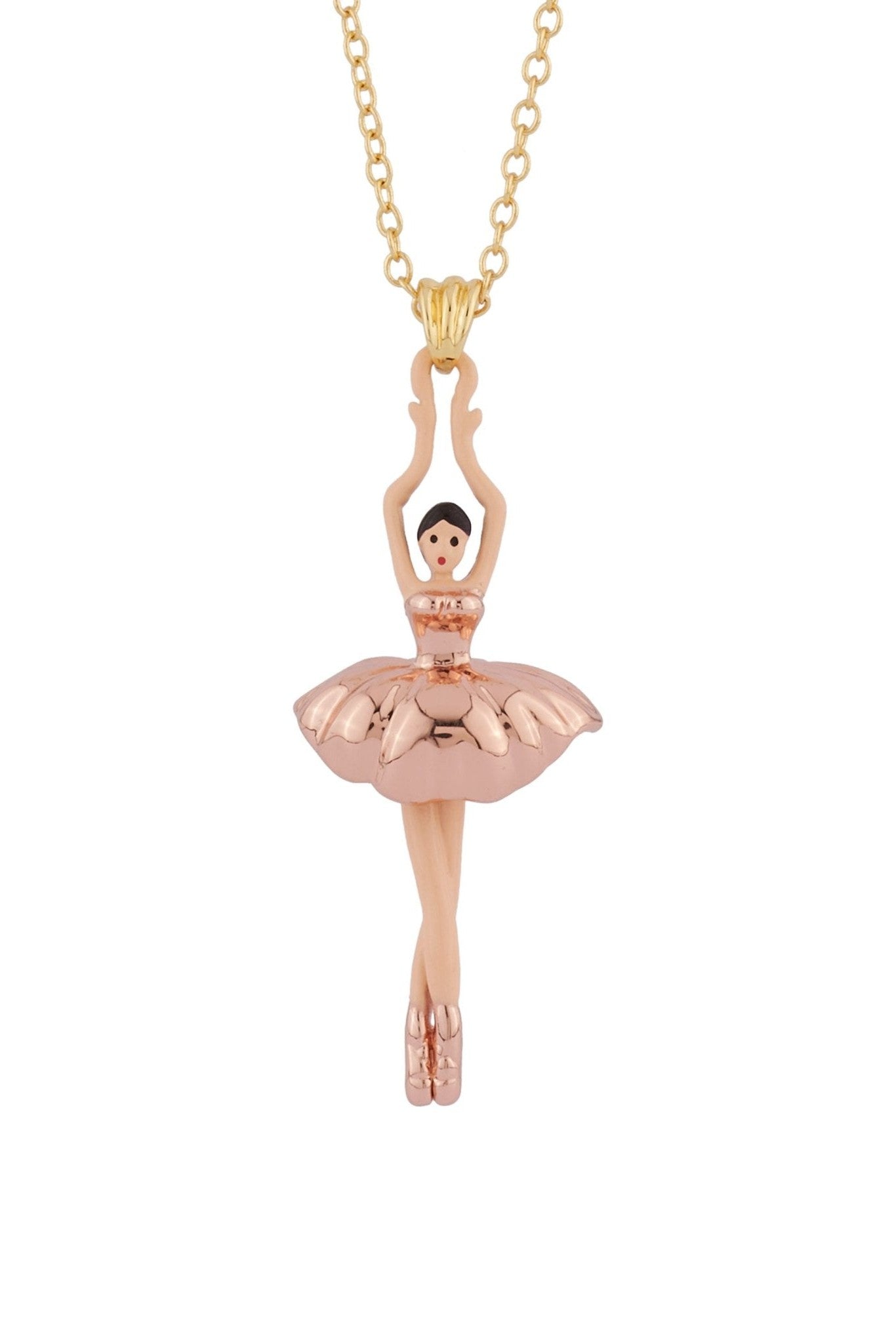 Step into a world of refined elegance with the Pas de Deux Pink Gold Necklace by Les Néréides. Inspired by the grace of ballet, this necklace features a delicate ballerina in soft pink tones, suspended from a pink gold-plated chain. Meticulously hand-painted and beautifully detailed, it embodies the romantic spirit and artistic flair of the Opéra de Paris.