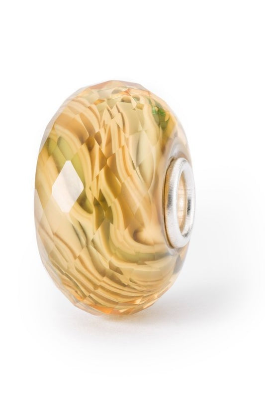 The warm yellow colors of the sun dance inside this faceted glass bead.