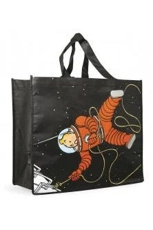 Carry your essentials in style with the Tintin Cosmonaut Recycled Bag. Featuring iconic imagery from Explorers on the Moon, this bag showcases Tintin on one side and Captain Haddock on the other, making it a standout accessory for fans of the series.