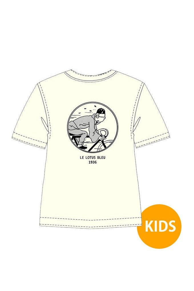 Kids T-shirt Tintin Blue Lotus (Bike) B&W White