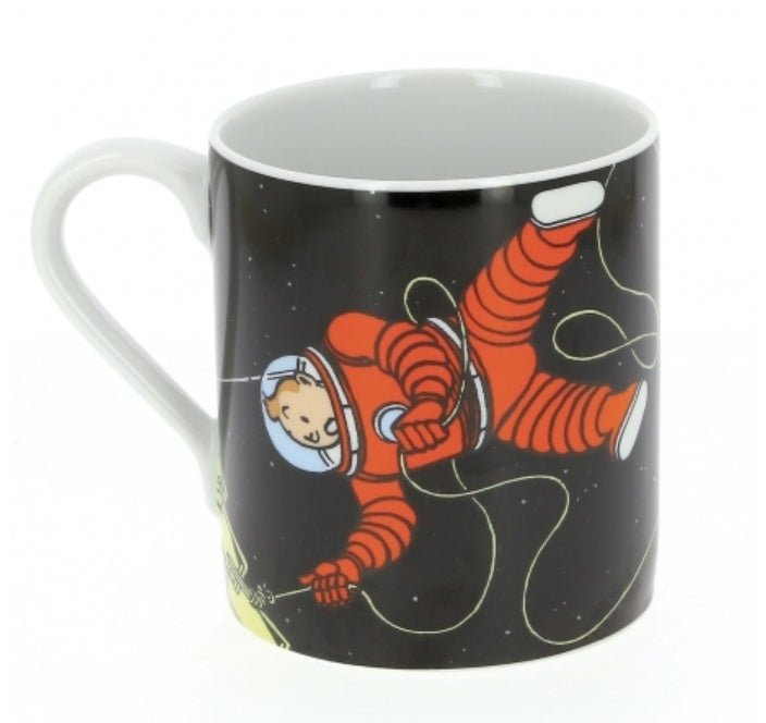 Relive one of the most iconic moments from Explorers on the Moon with this porcelain mug featuring Tintin and Captain Haddock in full spacesuit gear. Captured just as Tintin rushes to stop Haddock from wandering off the rocket, this design brings vignette C3 from page 10 to life. With a wide curved handle and smooth finish, it’s both functional and collectible—a must-have for Tintin fans.