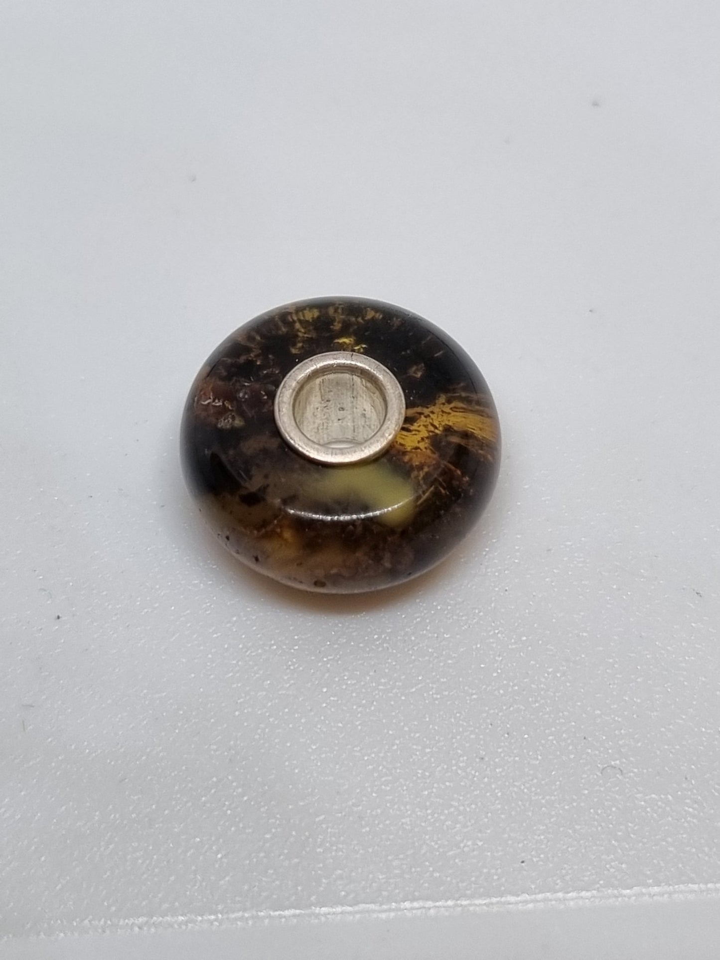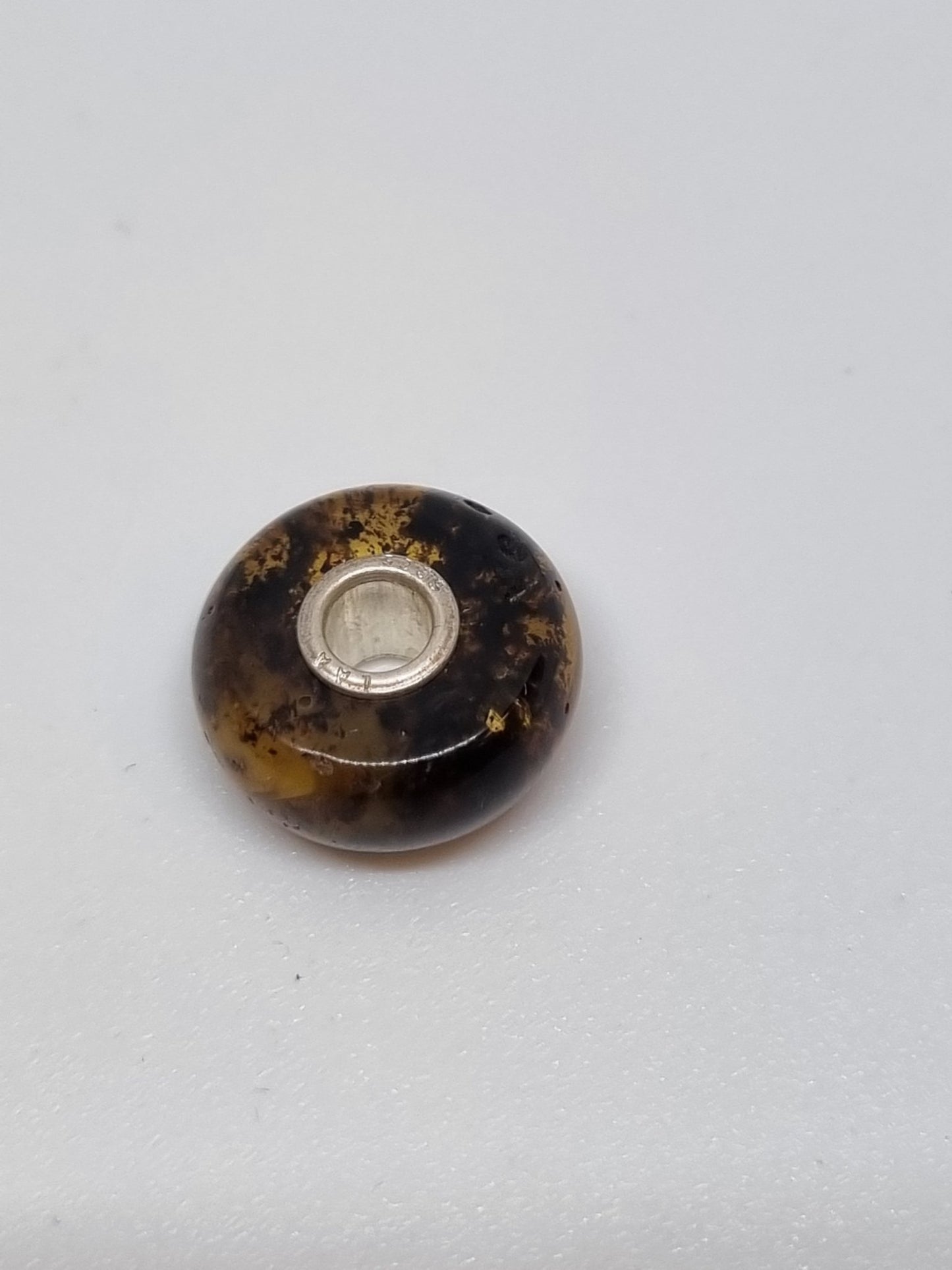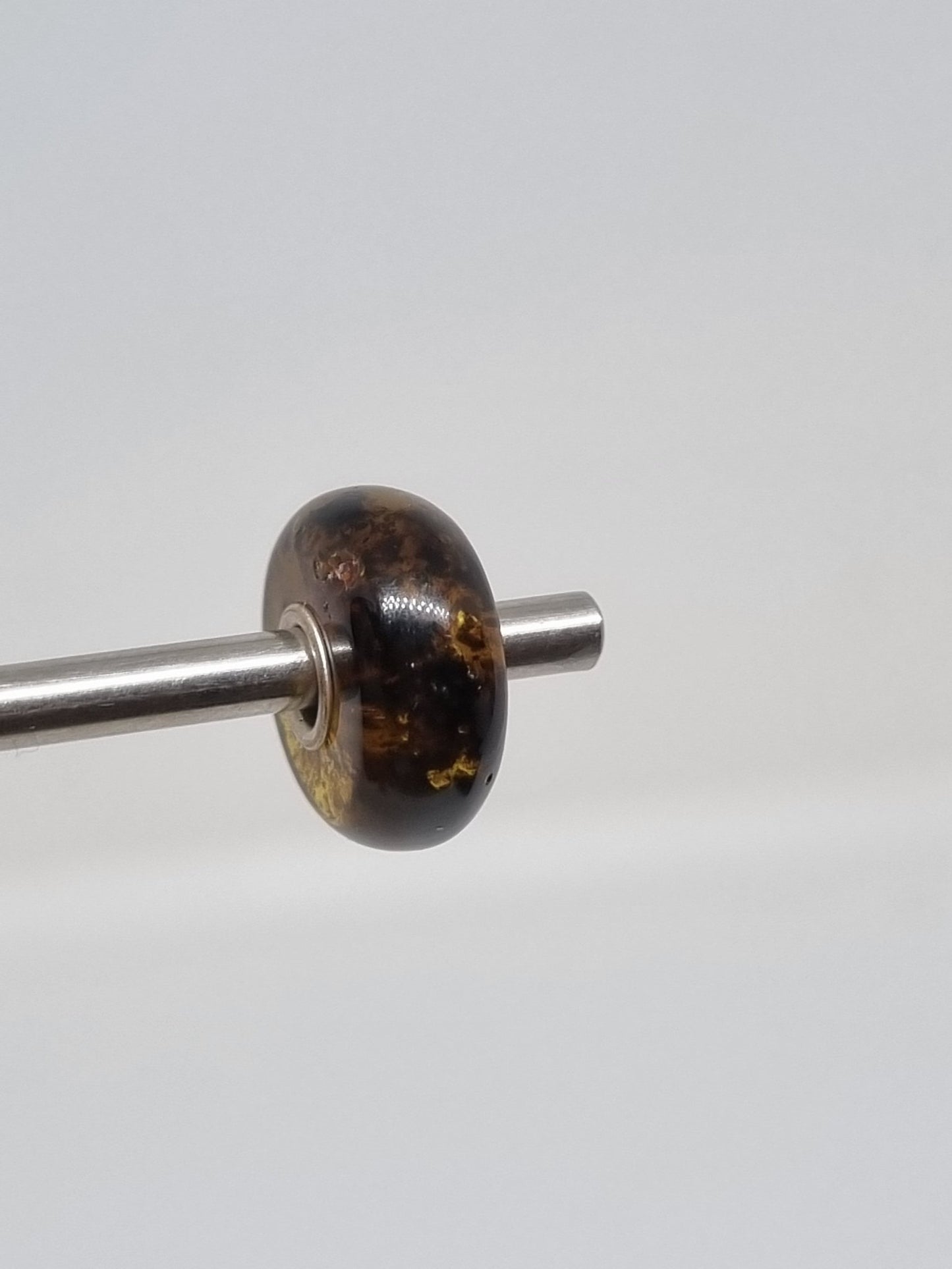 This is a unique amber bead with complex patterns formed by the hand of nature. The photo is the actual bead that you will be buying.