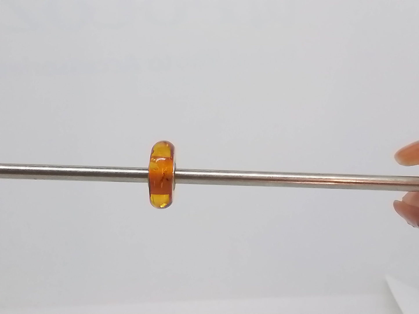 This is a unique amber bead with complex patterns formed by the hand of nature. The photo is the actual bead that you will be buying.