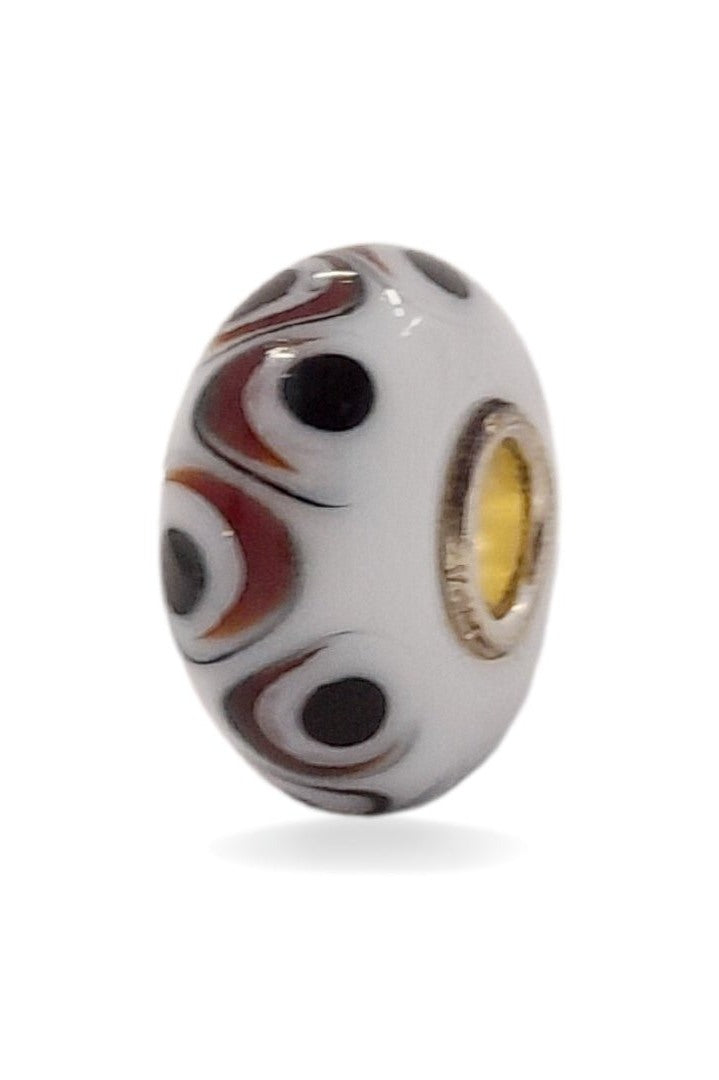 White Bead with Black Dots Universal Unique Bead #1555