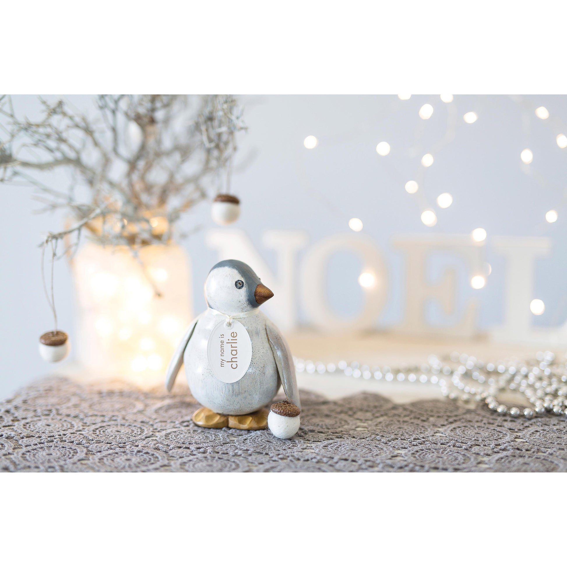Meet the adorable Baby Emperor Penguin, hand-carved with its own quirky personality. Whether gazing left, right, or straight ahead, each little penguin is full of character and ready to waddle into your home. With their classic black and white markings and handcrafted details, these penguins make a delightful gift or a charming addition to any collection.